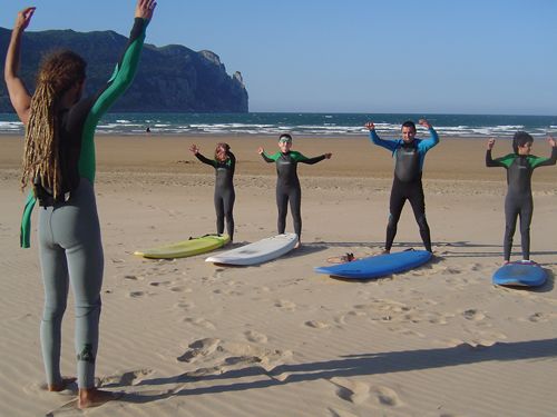 tarde, asistimos a una clase de surf, con un poco de teoría y mucho de